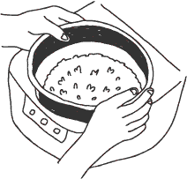 浄水器の水かミネラルウォーター(軟水)を入れ炊飯します。