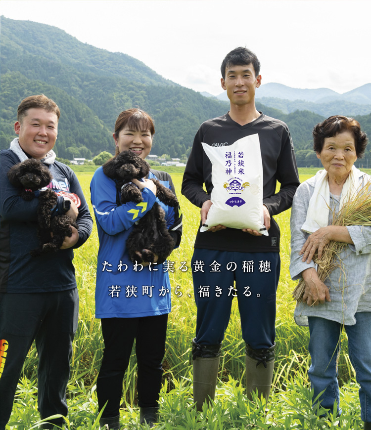 ひと口食べれば、福福とした笑顔が生まれる美味しさ。そんな幸せな味を目指し、情熱いっぱいに育てた福井県若狭町産の米です。もっちりとした食感や上品な甘みが特徴のコシヒカリは、農薬と化学肥料を抑えた特別栽培米もあります。そのほかにも、お手頃な価格帯のひとめぼれやあきさかりなどを取り揃えています。